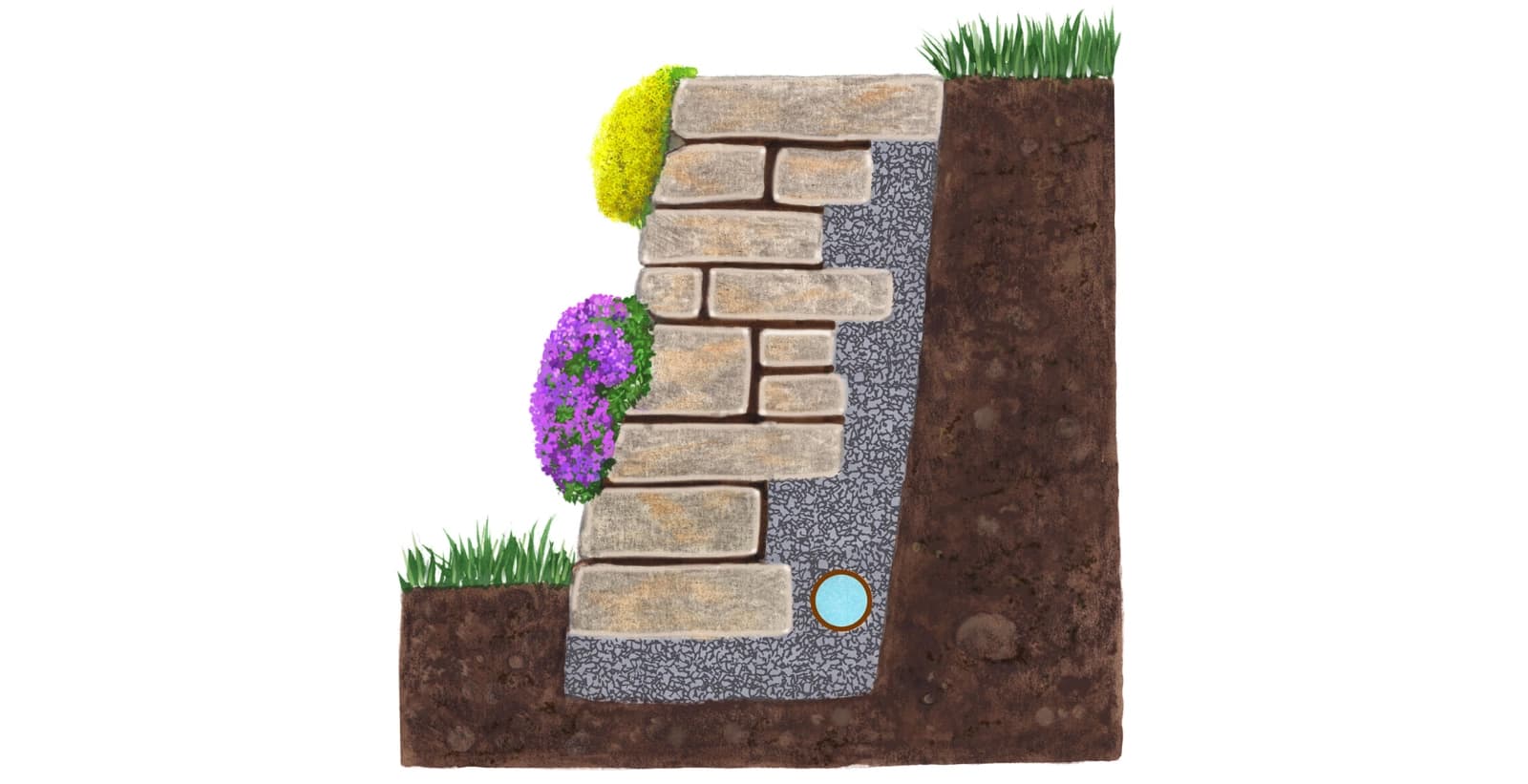 Tipp: Planen Sie Drainage und Wasserableitung mit ein – stauendes Wasser hinter der Mauer kann den Druck erhöhen und die Stabilität gefährden. Eine hinter der Mauer eingebrachte Kiesschicht und ein Drainagerohr sorgen dafür, dass Regenwasser sicher abfließen kann.