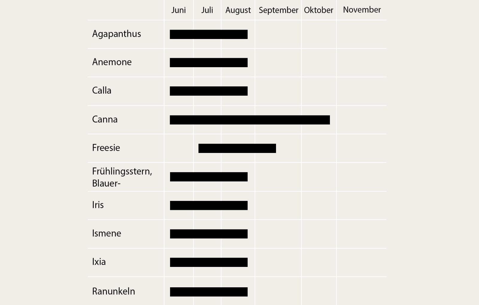 Frühjahrs- und Sommerblüher werden zu unterschiedlichen Terminen gesetzt, abhängig von der Kälteempfindlichkeit der Zwiebeln.